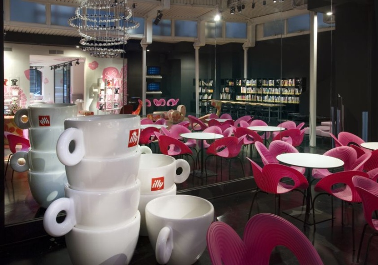 Галерея ИллиГалерея Illy – настоящий культурный салон, который путешествует по всему миру. Организаторы проводят светское мероприятие, ориентированное на бомонд и журналистов. Каждый раз его посещают известные люди из мира искусства, литературы, дизайна и кулинарии. Здесь лучшие бариста готовят кофе Illy под покровительством Università del Caffè. Кофейный университет - это глобальная программа Илли, дающая профессиональное образование в этой сфере людям, связанным с ресторанным и гостиничным бизнесом, а также тем, кто занимается производством и реализацией кофе. В специально подготовленном для салона пространстве мир преображается до неузнаваемости. Посетителей ждут публичные выступления, яркий дизайн, подарки от организаторов и, конечно, лучший кофе Илли. Думаете, раз это творческая выставка, значит, в небольшом помещении туда-сюда снуют понурые очкарики или претенциозные великосветские хлыщи и там нет места угощению? Вовсе нет, большинство посетителей и выступающих – открытые и общительные люди, которые пришли сюда обменяться впечатлениями и опытом во всем, что связано с кофейным бизнесом. Кроме того, в рамках салона проводится кофейная дегустация для всех присутствующих. Для бариста оборудуют отдельное пространство, где они поражают гостей салона своим мастерством и соревнуются в искусстве латте-арта. К напиткам предлагают аппетитные пирожные, больше похожие на миниатюрные произведения искусства. Райское наслаждение для души и тела! Центром каждой выставки является некая художественная инсталляция: это может быть огромная спиралеобразная скульптура из чашек Илли лимитированной коллекции или живые статуи, обыгрывающие кофейную тему. Дизайн Галереи Illy никогда не повторяется. Мировое арт-сообщество каждый раз с замиранием ждет, какие новые творческие идеи воплотят организаторы в своем проекте. Дефиле Галереи Illy по всему миру • В 2006 году в Милане, в самом сердце Брера, компанией Moroso была открыта Галерея Illy . Среди мероприятий, проведенных в галерее: торжественное открытие с художником Майклом Лином, выступления студентов фонда Микеланджело Пистолетто и Марины Абрамович. Также там проводились выступления известных писателей, дизайнеров и арт-хаусного режиссера Питера Гринуэя, куратора многих выставок.